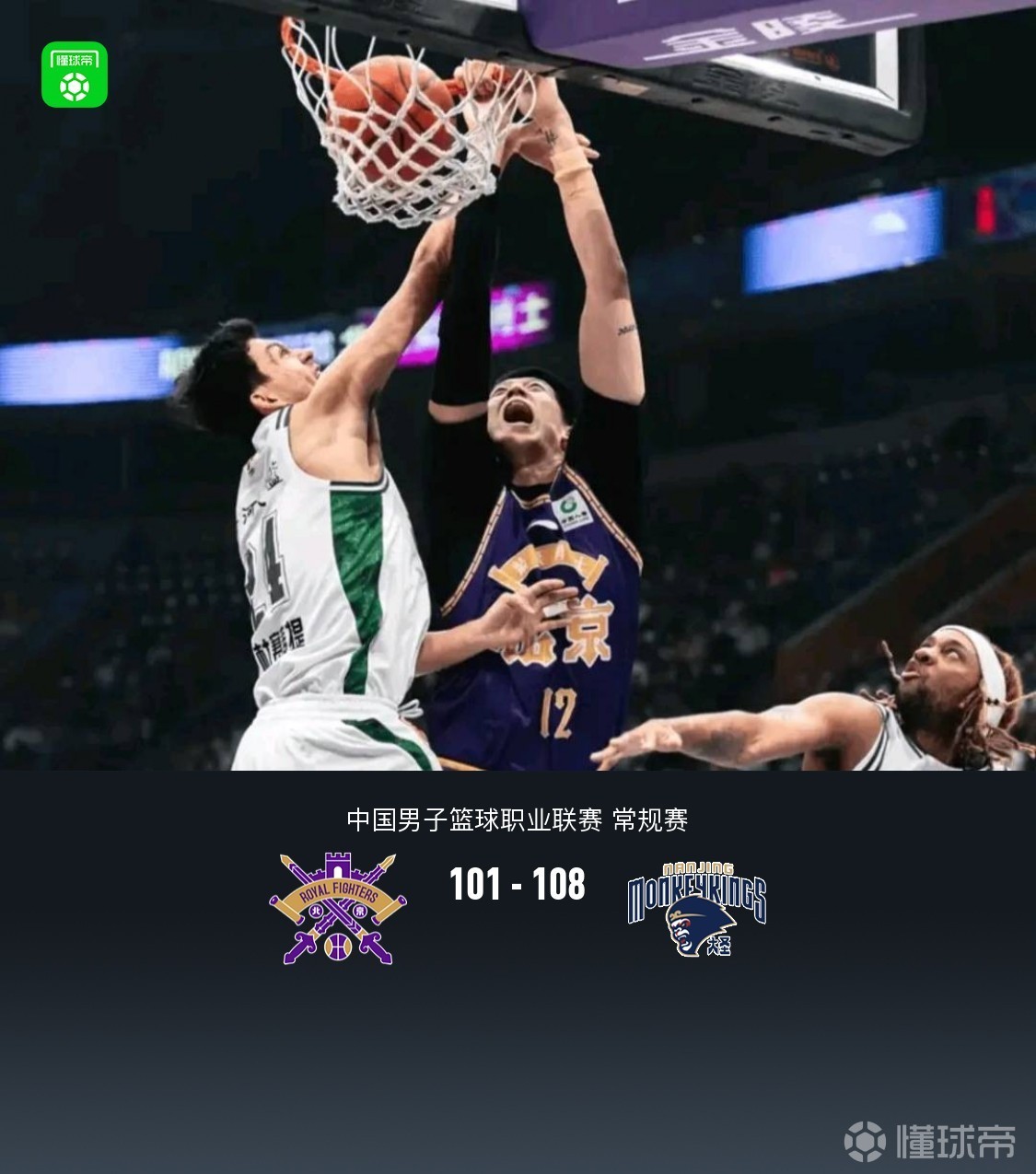 第四节北控格兰特-里勒拿下11分,同曦杰克逊-卡特莱特拿下19分,最终北控101-108不敌同曦